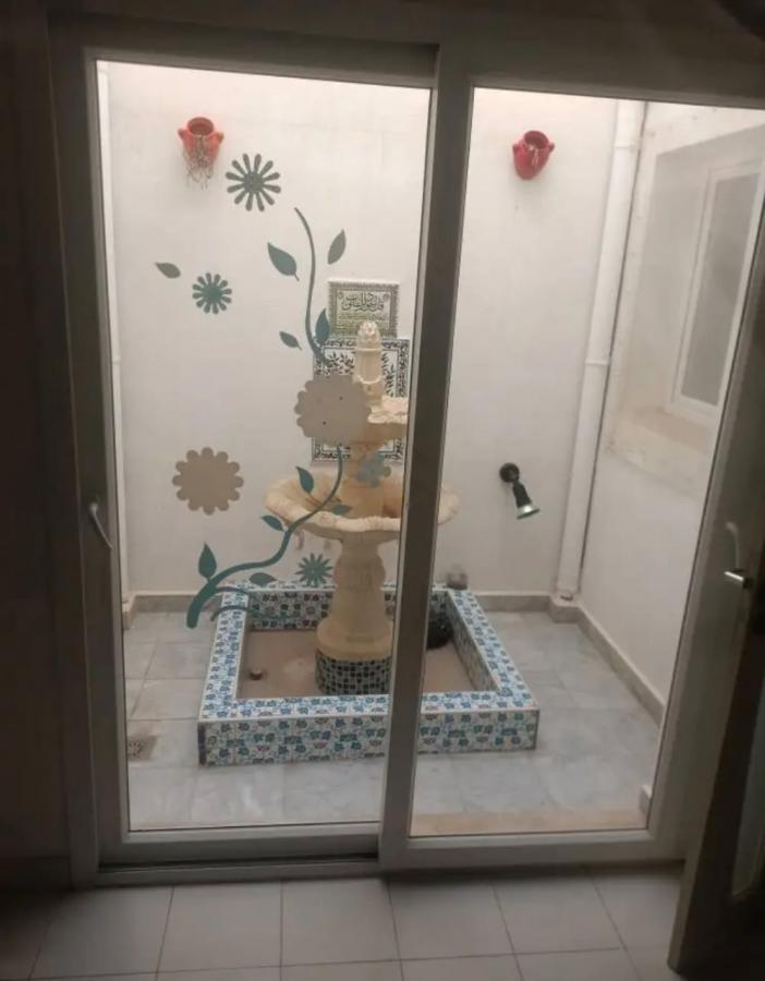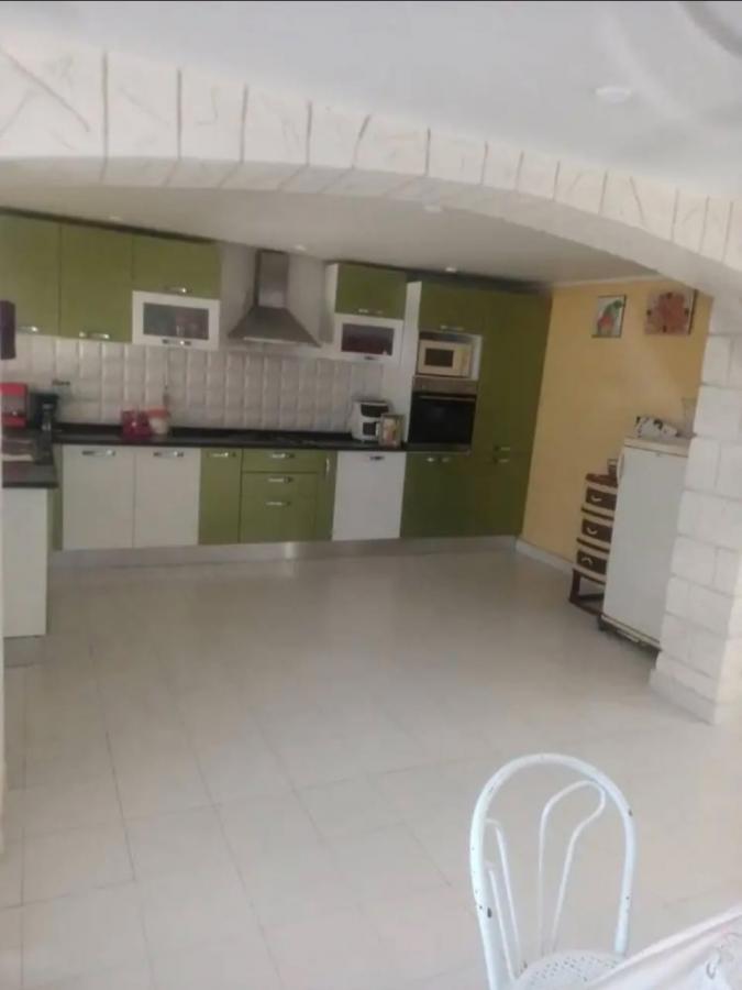 🌞Le hall d'entrée donne sur la pièce de réception qui est aménagée en un salon avec cheminée et une salle à manger. Quelques escaliers descentes nous mènent a une cuisine indépendante avec un coin de repas est entièrement aménagée par des éléments de rangement et équipée par une plaque de cuisson et une hotte aspirante. Elle donne accès à un séchoir exploitable et une fontaine.