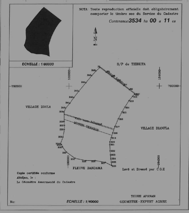 Parcelle facile d'accès et située à proximité du fleuve bandama pour les explorations agricoles.