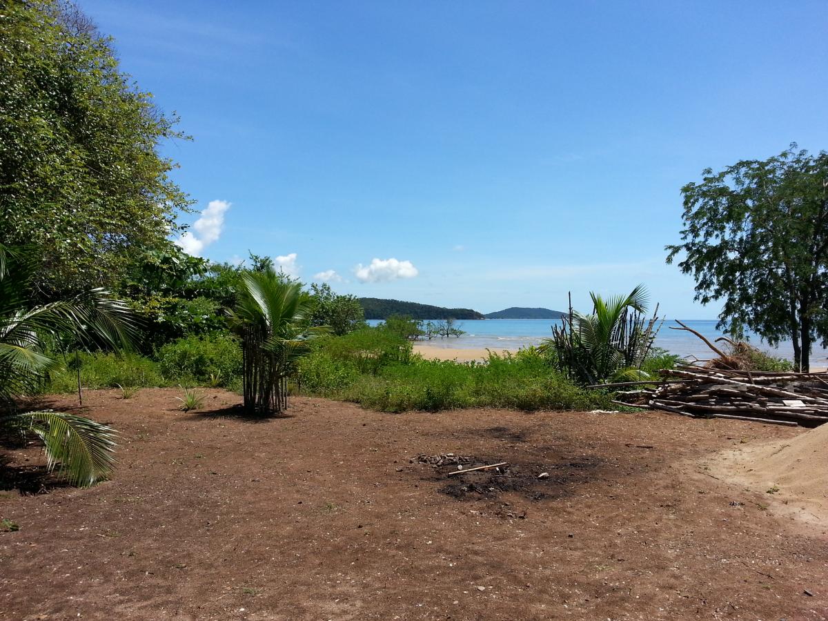 Le terrain est idéalement situé face à la mer, avec une colline à l'arrière, offrant ainsi une vue imprenable et une certaine intimité. De plus, il est délimité au nord et au sud par deux ruisseaux : l'un se jette directement dans la mer, tandis que l'autre est parfaitement potable et peut être utilisé à des fins domestiques.