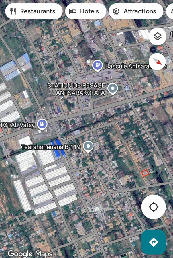 Ce terrain situé à toamasina2,premier position devant un grand chemin en sable,250 m de route goudronnée ,pas loin de station essence,voisin à gauche bungalows à louer.