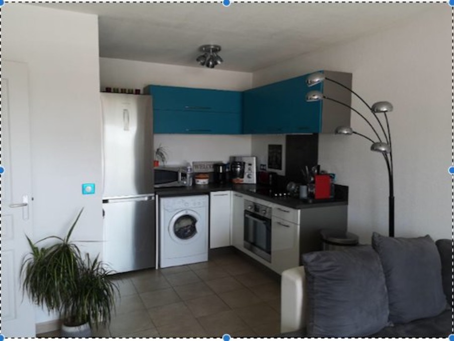 Beau 2 pièces dans résidence récente de 2011 , l'appartement ce compose d'un hall d'entrée avec rangement , d'une grande salle de bain au norme handicapé , une grande cuisine ouverte neuve , un grand salon donnant accès a une terrasse en forme octogonale exposée sud ouest .le bien dispose d'une grande chambre avec rangement . possibilité de louer un garage en sous sol pour 100euros/m