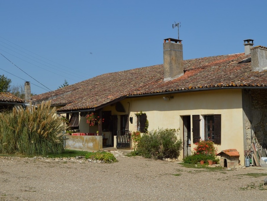 Bel ensemble en pierre comprenant une ancienne ferme, deux gîtes indépendants, diverses dépendances en pierre et un hangar agricole sur 24 hectares de terrain. en campagne tout au bout d'un hameau, à quelques kilomètres seulement de duras piscine les bâtiments sont indépendants les uns des autres maison principale : entrée sous petite terrasse couverte cuisine : 16.5 m2. séjour : parquet bois. 40 m2. salle d'eau : douche et lavabo. wc pièces en enfilade : chambre 1 : 11.5 m2. bureau :9.5 m2. chambre 2 : 14m2 grange attenante d'environ 60 m2 deux anciennes pièces de 18 et 15 m2 + ancienne cuisine de 18m2 et diverses pièces + auvent maison d'amis 1 : entrée dans pièce de vie / chambre de 40 m2 avec cheminée en pierre, carreaux terre cuite, poutres apparentes et ancien évier en pierre. cuisine / salle à manger de 27 m2. salle d'eau avec douche, lavabo et wc. 7.6 m2. combles aménagés en couchage maison d'amis 2 : entrée dans cuisine de 12 m2. carreaux terre cuite et poutres apparentes. petite mezzanine avec couchage d'appoint salle d'eau avec douche, lavabo et wc. 5 m2. pièce de vie / chambre avec cheminée en pierre. 23 m2 grange attenante d'environ 75 m2. grange en pierre de 10 |