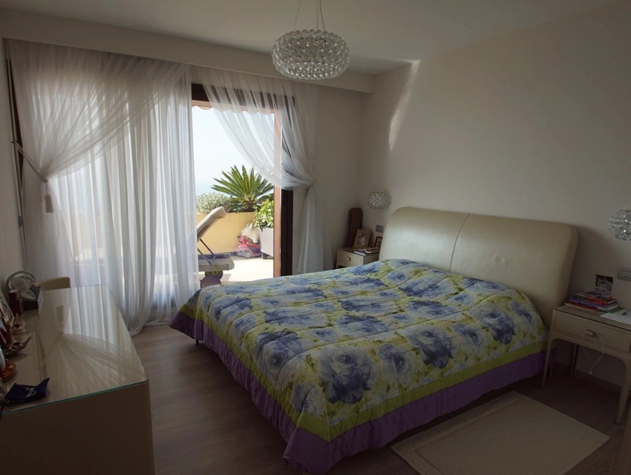 Appartement en dernier étage plein sud . il se compose , hall, placards, séjour, trois chambres, , une salle de bains , deux salles d'eau, wc indépendant, dressing une cuisine équipée donnant sur un patio, . une cave un garage double. une terrasse de 35m2 ayant une vue panoramique mer jusqu'au cap d'antibes