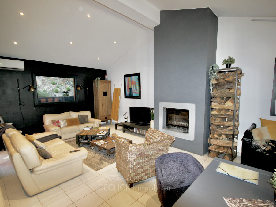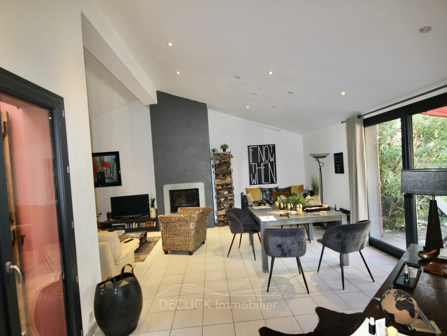 A découvrir sans tarder !! dans un cadre verdoyant- rénovation complète et de qualité pour cette maison de charme- en rdc: spacieux séjour/sam de 46 m2- belle hauteur sous plafond- cheminée insert- de plain-pied sur terrasse et patio- cuisine de 12m2 totalement équipée- buanderie- bureau- wc- a l'étage: 2 belles chambres de 13, 60 et 13, 80 m2 avec placards- spacieuse sdb avec douche et baignoire- wc séparé- maison fonctionnelle- parfaitement entretenue et au goût du jour- prestations récentes : isolation- double vitrages- climatisation réversible- parcelle de 689 m2 arborée et fleurie- plus parcelle de 1200 m2 flanc de coteau non constructible- garage indépendant de 24m2- parking 3 voitures- portail motorisé- proximité immédiate du centre-ville et périphériques- prix 488 000 euros inclus honoraires agence 3, 83% ttc charge acquéreur- declick immobilier -
