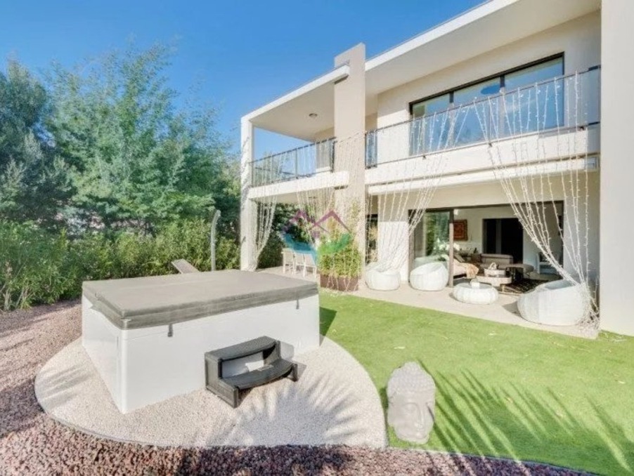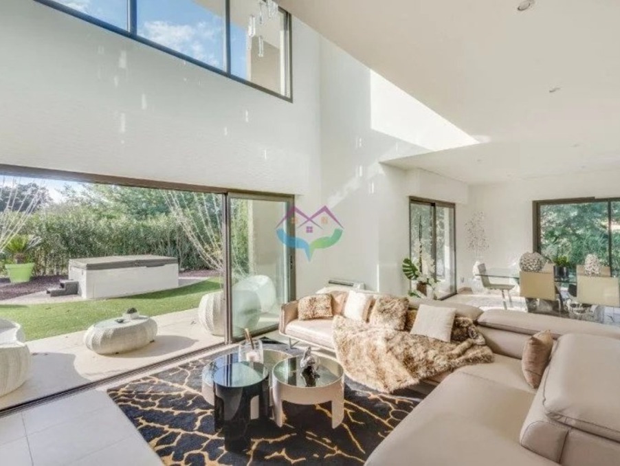 Saint raphaël boulouris appartement villa contemporain t6: appartement villa en duplex d'une surface habitable de 237m2 aux prestations haut de gamme dans une petite copropriété récente de 4 lots édifiée sur un terrain paysagé de 4000m2, entièrement sécurisée. le rdj offre une superficie de 118m2 avec un vaste séjour-salon de 48m2 avec cheminée, baigné de lumière par ses nombreuses baies vitrées et son plafond cathédrale, accès à la terrasse et au jardin méditerranéen de 300m2 plein sud avec jacuzzi haut de gamme, la cuisine équipée offre également une belle superficie et un accès extérieur. le bas est complété par une suite aux beaux volumes avec sdb et dressing. wc. l'étage propose une superficie de 119m2 qui s'ouvre sur une grande mezzanine bureau de 30m2 avec vue sur le jardin paysagé de la propriété, trois chambres en suite dont une master de 40m2 avec dressing, sdb et douche italienne. wc. l'étage offre également une grande terrasse accessible des chambres. un garage individuel de 32m2 avec accès direct à l'appartement par une porte blindée et des places de stationnement viennent compléter l'ensemble. cet appartement villa à l'architecture contemporaine est aménagé avec |
