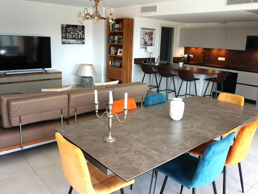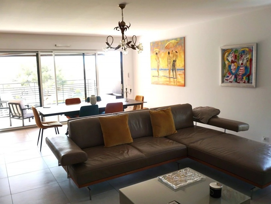 Saint raphaël boulouris appartement t3 à vendre: a vendre à saint raphaël dans le quartier de boulouris, un grand appartement 3 pièces en dernier étage d'une surface habitable de 101, 98m2 avec une terrasse sud/ouest de 22, 63m2. l'appartement est vendu avec une cave et un garage. résidence récente de standing avec ascenseur. pièce de vie sur cuisine de 47m2, un cellier, deux grandes chambres en suite avec leur salle de douches et placards. très bel appartement très bien situé à boulouris à deux pas des commerces du centre et proche de la mer également. a vendre par votre agence st raphaël immo santa lucia au prix de 690 000eur fai référence 3259.