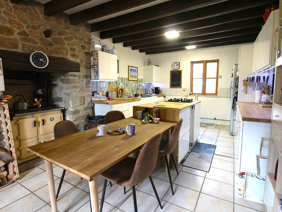 En campagne, dans un petit hameau (un voisin à proximité), jolie maison en pierres comprenant: au rez-de-chaussée : hall d'entrée, cuisine/salle à manger avec cuisinière à bois, 2 chambres, buanderie + wc. 1er étage : palier , salon avec poêle à bois et balcon donnant sur le jardin, chambre avec salle de bains et dressing, autre salle d'eau et wc. a l'extérieur jardin arboré avec petite mare. avec dépendance en pierre et garage en bois. terrain d'env. 1700 m². fenêtres bois double vitrage (ancien) assainissement à réhabiliter chauffage : poêle et cuisinière à bois. (6.00 % honoraires ttc à la charge de l'acquéreur.)
