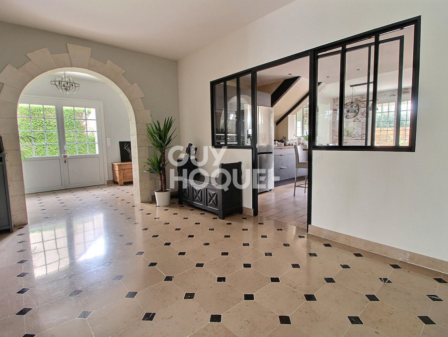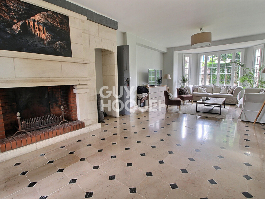 Rambouillet, 6-7 min à pied de la gare et du centre-ville, vous trouverez cette magnifique meulière des années 1900 refaite avec goût, comprenant : - au rez-de-chaussée : hall d'entrée, séjour avec cheminée (50m²), grande cuisine comprenant la salle à manger (35m²), buanderie, une chambre, un bureau et une salle de douches avec toilettes, - au premier étage : palier, deux chambres, un bureau, une salle de bains, une salle de douches, deux toilettes et un dressing. - au deuxième étage : palier, trois chambres, salle de jeux et une salle de douches avec toilettes. chauffage par pompe à chaleur. 2 caves et un garage double avec portes automatiques. sur un terrain clos et arboré d'environ 760 m²