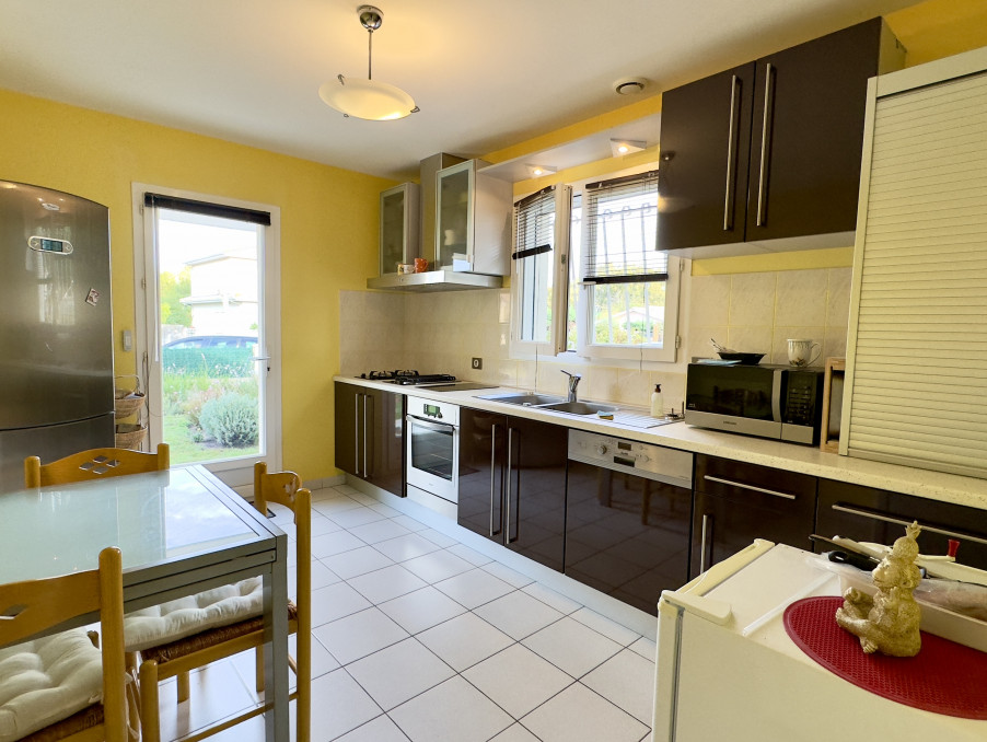 Maison de 1995, de plain pied, de 115m2, située au calme à saint médard en jalles, secteur magudas, à proximité des commodités (écoles, commerces, aéroport de mérignac, bus). elle offre une entrée, un séjour exposé sud / ouest avec sa cheminée insert, une cuisine indépendante équipée (lave vaisselle, hotte aspirante, plaque grill, plaque induction et plaque gaz, four), 3 chambres avec placard, une grande salle de bains avec baignoire, douche et placard, un cellier amenant sur un wc séparé cette demeure dispose également d'un garage attenant de 18m2, d'une parcelle d'environ 700 m2 avec 3 terrasses (exposées sud, nord et ouest), dont 2 carrelées, 3 places de parking, un puit et arrosage automatique. ce bien est équipé du double vitrage, de volets roulants électriques, de la fibre internet, d'une chaudière au gaz. maison très bien entretenue.