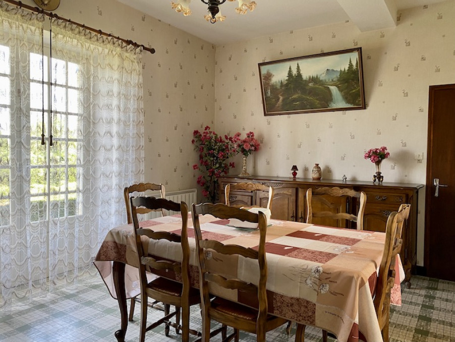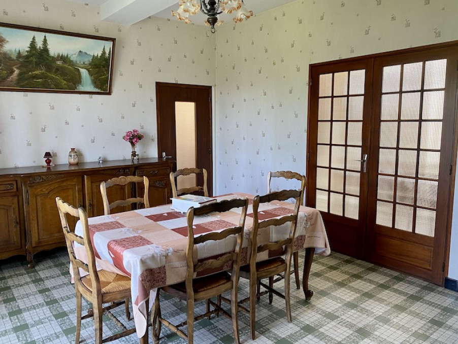 Cette charmante propriété de village comprend une maison traditionnelle (mitoyenne les 2 côtés) et une belle et grande grange, ainsi qu'un pré et d'autres dépendances. la propriété se trouve derrière l'église de tilly, dans l'indre. le logement de cette maison est au rez-de-chaussée avec un grenier aménageable. la maison comprend un salon avec des portes vitrées au jardin, cuisine, 3 chambres, salle d'eau, un wc séparé et un atelier/buanderie attenant. chaillac et lussac-les-eglises sont à 10 minutes en voiture de tilly. ces deux villages ont une sélection de commerces quotidiens. À chaillac il y a également un lac pour la baignade en été et des promenades ou la pêche tout au long de l'année. les villes historiques de montmorillon et le blanc sont à 30 minutes. maison : rez-de-chaussée : entrée, couloir - carrelé (12m2) avec des armoires encastrées au fond de couloir. cuisine - carrelée 5.1 x 3.1m (15m²) avec un insert, aménagée et équipée (évier, plaque de cuisson électrique, four, hotte) salon/salle à manger - carrelé 5.1 x 3.7m (19m²) avec portes vitrées au jardin. 3 chambres - (12.6 avec portes vitrées au jardin, 12 et 9.5m2) salle d'eau - carrelée (8m²) (douche, l |