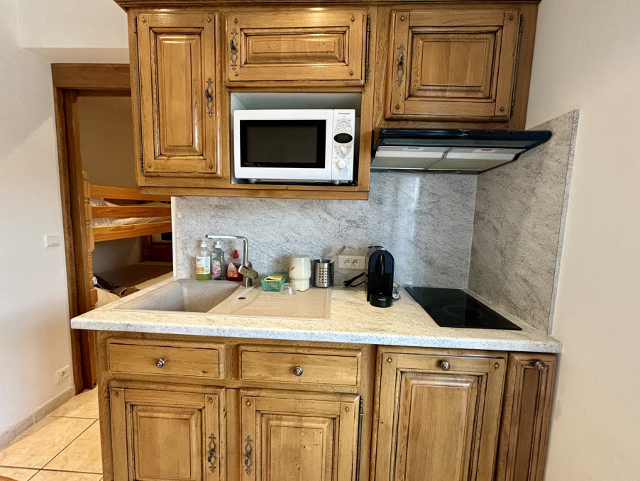 Très joli studio tout refait pouvant accueillir jusqu'à 4 personnes. une entrée avec un coin montagne, une salle de douche et un wc séparé. une pièce à vivre avec une kitchenette et un séjour s'ouvrant sur un balcon exposé en ouest. ce studio est aménagé avec beaucoup de goût et un très joli mobilier. dans une résidence en front de neige, très proche des commerces et skis aux pieds. vendu meublé avec son casier à skis.
