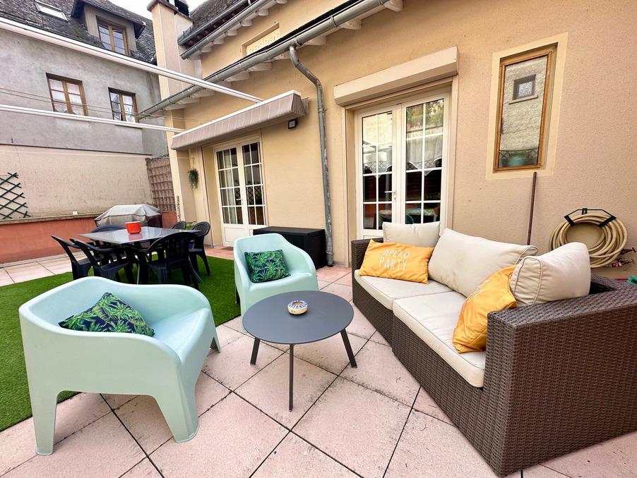 exclusivité mci immobilier véritable coup de coeur ! vous recherchiez un bien d'exception ? ne cherchez plus ! cette maison de ville de type 5 a été entièrement rénovée dans les règles de l'art ! elle est composée en rdc de 2 garages avec un portail électrique au premier étage vous découvrirez une somptueuse pièce à vivre traversante composée d'une cuisine ouverte sur un salon / salle à manger. vous pourrez profiter sur ce même niveau d'une immense terrasse avec un coin repas / plancha ou tout simplement vous détendre entre amis au salon extérieur. sur ce même niveau une salle de bain, un wc séparé ainsi qu'une chambre. au deuxième étage vous trouverez 3 chambres, une autre salle d'eau avec un wc ainsi qu'une buanderie. ce type de bien est extrêmement rare de par ses volumes, ses 2 garages, et la qualité de la rénovation qu'il propose. c'est un véritable coup de coeur comme on en voit peu ! informations uniquement par téléphone ou pour organiser une visite
