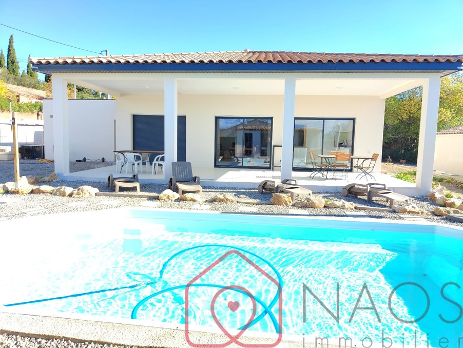 20mn de béziers, 20 mn de pézenas, villa neuve. (quelques finitions sont en cours) 4 faces de plain-pied, cette villa dispose d'une pièce de vie avec cuisine équipée de 61 m² avec accès direct sur une terrasse couverte de 43 m² donnant sur la piscine et le pool house. un garage de 38 m² carrelé et doublé comprenant une buanderie le tout sur 889 m² de jardin clos et arboré. a l'intérieur de l'habitation, 3 chambres avec placard, un cellier, une salle d'eau avec double vasque, un cellier, 2 wc au total. climatisation réversible gainable. garantie décennale, normes rt 2012.eclusivité naos immobilier réf. 21524 honoraires ttc charge vendeur les informations sur les risques auxquels ce bien est exposé sont disponibles sur le site géorisques : fr