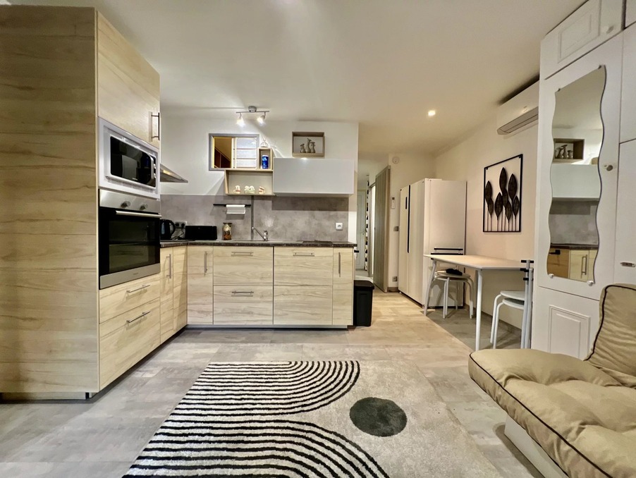****vendu****. pour les vacances ou pour y vivre, joli studio de 30m2 avec cabine. récemment rénové, climatisé, douche italienne et cuisine toute équipée. la proximité de la plage et la terrasse ombragée, ainsi que le calme de la résidence, vous permettront de profiter pleinement de vos vacances et de vous détendre en toute tranquillité après le travail. les informations sur les risques auxquels ce bien est exposé sont disponibles sur le site géorisques https://