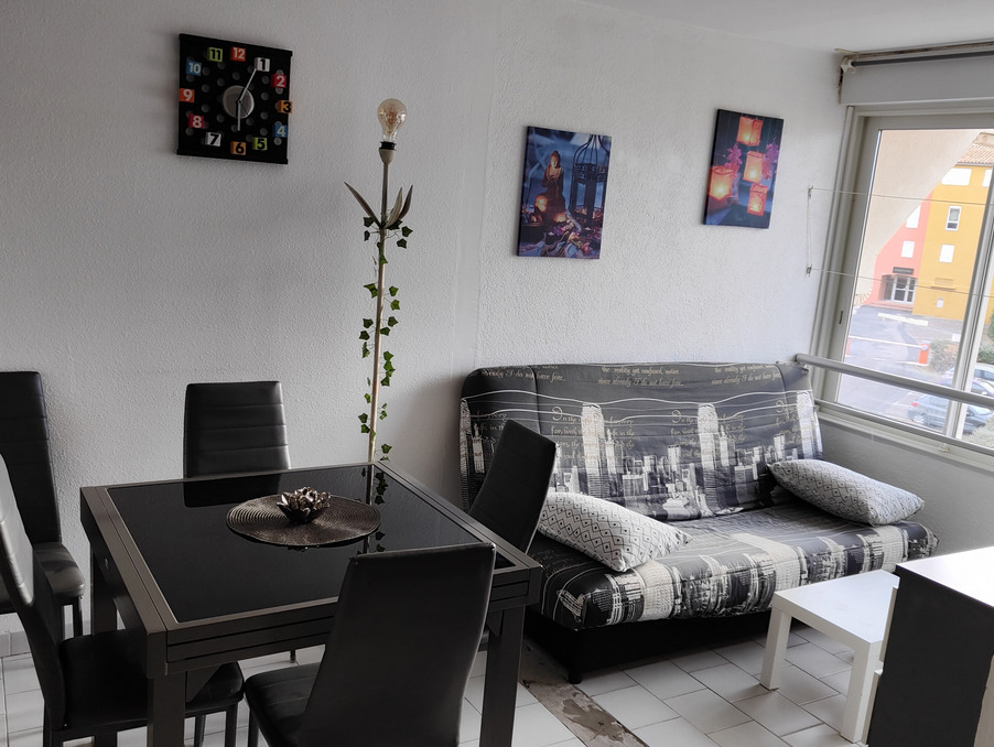 Le cap d'agde: secteur des falaises proche plage de la grande conque: appartement 2 pièces + loggia vitrée. ( très bon état général vendu meublé et équipé ). comprenant: entrée, salle d'eau, wc indépendant, 1 chambre avec placard, cuisine équipée ( lave linge + lave vaisselle... ) séjour + loggia vitrée vue dégagée ..exposition est. ascenseur, pisicne dans la résidence.