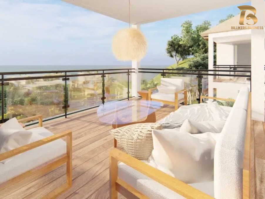 La villa couvre 248 m² de surface plancher (clos et couvert) et 439 m² d'emprise au sol (coursives, salons ouverts, coin repas extérieur, terrasses, cuisine extérieure, parties communes extérieures). construite sur 2 niveaux, elle comprend 4 ou 5 chambres avec dressing et salle de bain. la partie rez-de-chaussée comprend les parties communes : séjour et coin repas fermés, cuisine intérieure et extérieure, réserves, séjour et coin repas extérieurs, deux chambres avec salles de bain et dressing et toute cette partie surplombe la piscine et possède une vue plongeante sur la mer et l'horizon. l'étage, qui comprend 2 chambres avec dressing et salle de bain, salle de jeu et réserves, donne sur la piscine et la partie « plage piscine ». le terrain en pente pourra être aménagé avec des petites tonnelles et cheminements en lacets. villa non meublée (sauf option) livrée avec cuisine équipée, chambres climatisées, voiturette électrique de golf 6 places. modification des plans possible. nous contacter pour plus d'information au : ou .