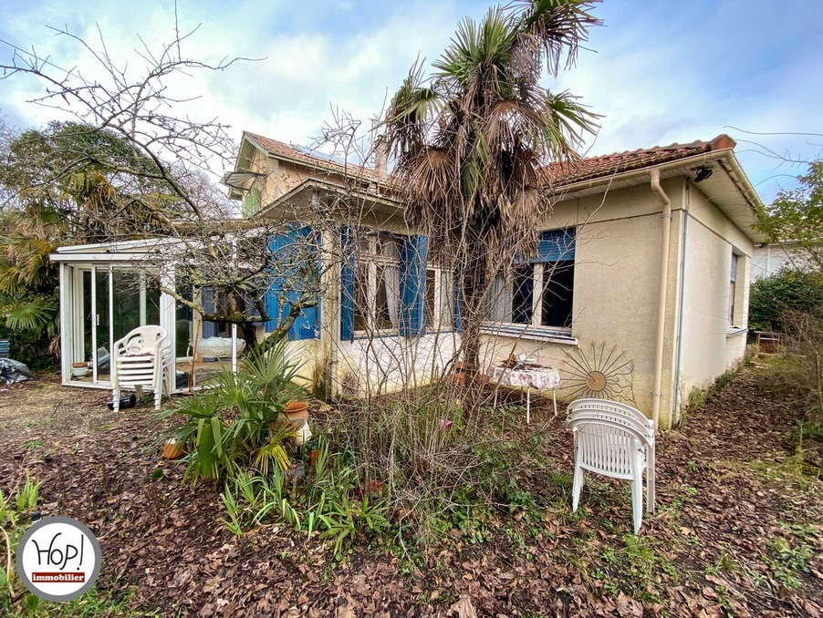 Exclusivité hop! immobilier. mérignac arlac, maison d'environ 152 m² habitable à rénover sur un terrain de 1000 m². le terrain de la maison est issu d'une division parcellaire et comporte un espace boisé à conserver (ebc) de 600 m². possibilité d'acheter la 2ème partie du terrain de 1017 m² ( en mandat exclusif dans notre agence également). la maison de plain-pied comporte un séjour de 30.6 m², un grand salon de 38.4 m², 3 chambres de 15.6, 10.6 et 12.2 m², une cuisine de 20 m² avec cellier, 2 salles d'eau, un dressing, un wc et un dégagement. hors surface habitable, la maison dispose aussi d'une véranda de 7 m² ainsi qu'une cave de 7 m². une rénovation intégrale de la maison est à prévoir. double vitrage bois sur une partie des fenêtres, chaudière gaz, toiture en tuile. la maison se situe au fond du terrain et est à l'abri du bruit (rue non passante). proche tous commerces, école, collège. arrêt de bus à proximité (lignes 74 et plus de photos sur notre site internet.