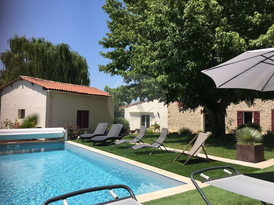 A vendre, brens, grande maison de charme avec dépendances piscine et terrain. cette construction en pierre des années 1900 saura vous séduire par son astucieux alliage de traditionnel et de modernité. l'habitation principale est composée au rez de chaussée d'une entrée, d'un salon cosy de 21m² s'ouvrant sur une salle à manger de 28m², d'une cuisine dînatoire de 24m², d'une véranda, d'une salle de bains de 7, 5m² avec douche et baignoire, d'un cellier buanderie, d'un wc indépendant. a noter qu'une pièce de 37m² attenante au salon vous permet si vous le souhaitez de disposer grâce à des aménagements d'une pièce de vie de plus de 55m². l'étage lui, se compose de trois chambres (22m², 13m², 13m²), d'une suite parentale de 19m² avec douche placard et wc. pour recevoir votre famille, vos amis ou créer une activité professionnelle, trois suites parentales indépendantes de 20m² avec salle d'eau et wc sont à votre disposition. une des suites peut être rattachée à l'habitation principale. l'extérieur admirablement aménagé vous ravira et, vous permettra de vous adonner à de précieux moments de détente. l'espace piscine sécurisé ne fera que renforcer l'impression de bien-être. e |