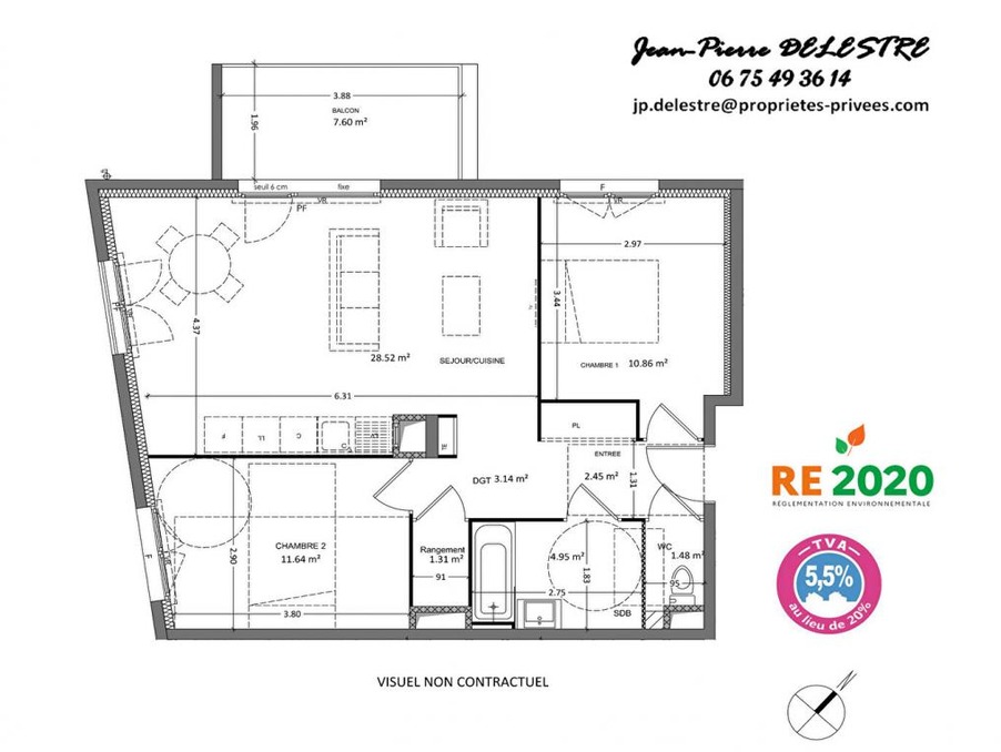 Jean-pierre delestre vous propose dans une nouvelle résidence intimiste et sécurisée, de 35 logements de 2 à 4 pièces, très bien située dans le secteur grenoble-liberation à proximité de l'arrêt de tram louise michel, un 3 pièces au 3° et dernier étage de 65, 28 m², avec double orientation so-no, disposant d'une pièce de vie de 29m² ouvrant sur un large balcon de 7.60 m², 2 chambres, 1 salle de bain, 1 wc séparé, 1 cellier-rangement, 1 garage au sous-sol, avec pré équipement pour borne de recharge des véhicules électriques est inclus dans le prix .une opportunité rare pour habiter comme pour investir à proximité du centre ville des commerces, tramway et bus à 5 mn à pied.accession privee ou investissement avec avantages fiscaux. norme énergétique re2020 raccordé au chauffage urbain.réf. ''t3 ab11 dispo 2°t26'' prix : 292 000 euros ou (256 717 euros en tva à 5.5% sous conditions de ressources et pour acquérir votre résidence principale, détails disponibles sur demande). (la disponibilité de ce bien est prévue au 2° trimestre 2026, prix indiqué, avec tva à 20%, en ''direct promoteur'' nos honoraires restant à charge du vendeur, il n'y rien à rajouter).visuels non con |