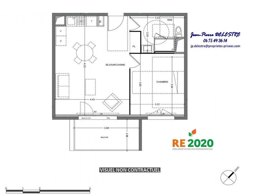 Jean-pierre delestre vous propose dans une nouvelle résidence intimiste et sécurisée, de 35 logements de 2 à 4 pièces, très bien située dans le secteur grenoble-liberation à proximité de l'arrêt de tram louise michel, un 2 pièces au 2°étage /3 de 46.20m², orientation se, disposant d'une pièce de vie de 28 m² ouvrant sur un large balcon de 7.60 m², 1 grande chambres de 12.38 m² , 1 salle d'eau-wc.une opportunité rare pour habiter comme pour investir à proximité du centre ville des commerces, tramway et bus à 5 mn à pied.accession privee ou investissement avec avantages fiscaux. norme énergétique re2020 raccordé au chauffage urbain.réf. ''t2 a203 dispo 2°t26'' prix : 203 000 euros - (la disponibilité de ce bien est prévue au 2° trimestre 2026, prix indiqué, avec tva à 20%, en ''direct promoteur'' nos honoraires restant à charge du vendeur, il n'y rien à rajouter).visuels non contractuels .non soumis à l'affichage du dpe . les informations sur les risques auxquels ce bien est exposé sont disponibles sur le site géorisques projet, contactez jean-pierre delestre, au ou par courriel à professionnel de l'immobilier est soumis à une obligation d'identification et de vérific |