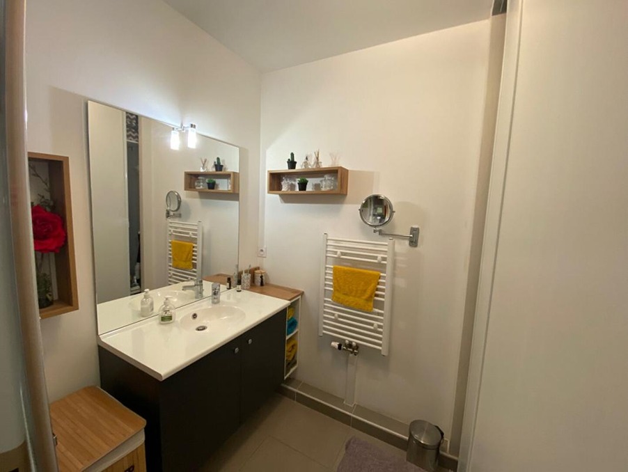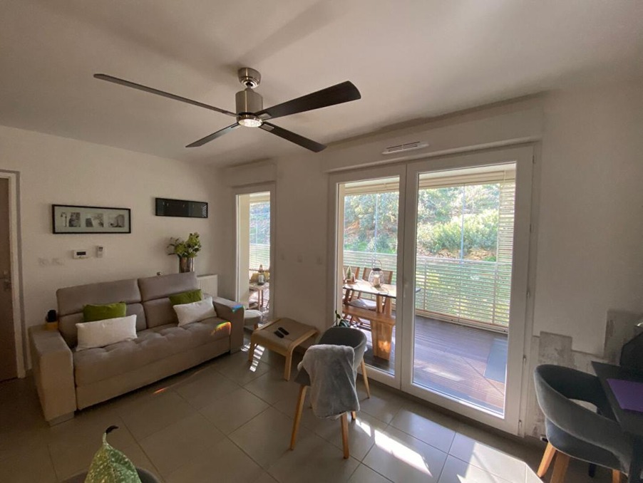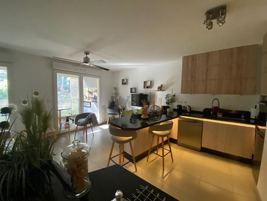 Rare : très beau t2 dans une résidence récente ( et sécurisée.proche des accès , des commerces et des commodités venez découvrir ce luxueux appartement dans lequel tout a été pensé pour le confort, l'ergonomie et la fonctionnalité.la pièce de vie vous offrira une magnifique cuisine américaine sur mesure parfaitement équipée avec plan de travail en granit noir, four, plaque induction, lave vaisselle...meubles et plan de travail avec rétro éclairage, salon avec coin bureau s'ouvrant sur la terrasse.la grande chambre de 12 m2 s'ouvre également sur la terrasse et vous propose de nombreux rangements ainsi qu'une tête de lit avec rétro éclairage et liseuses intégrées.la salle de douche est moderne et confortable vous offrant des rangements et un lave linge intégré. les toilettes sont spacieuses et séparées.la terrasse de 15 m2 aménagée avec une cuisine d'été vous offre la possibilité par des panneaux de verre coulissants d'être totalement ouverte ou fermée.une place de parking privative complète ce bien.aucun travaux à prévoir, juste poser ses valises.côté budget :charges 82 euros/moistaxe foncière 1106 eurosdpe : c 66ges : c 11montant moyen estimé des dépenses annuelles d'énergie |