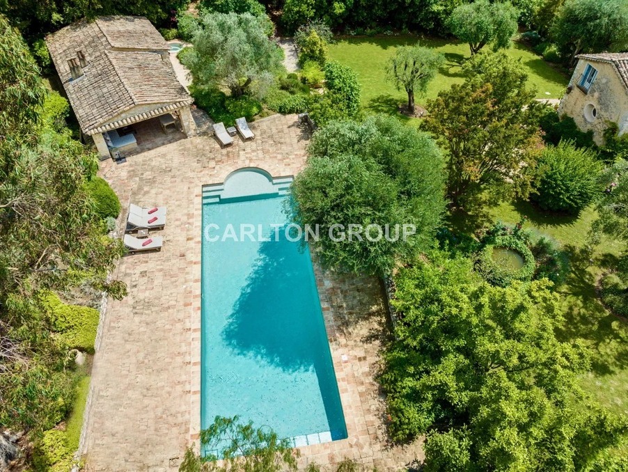 Proche de valbonne et à pied du centre de roquefort, traditionnel mas provençal en pierres de caractère au charme fou offrant un cadre de vie unique avec un intérieur authentique et chaleureux avec des matériaux nobles et de qualité. cuisine provençale ouverte, salle à manger avec cheminée, salon, salle de jeux, 4 chambres en suite avec salle de bain, buanderie. entièrement rénové il offre tout le confort moderne (climatisation intégrée, drainage périphérique refait). -- dans un environnement verdoyant et calme, sur un jardin plat de 4.300 m2 signé english garden center et composé de nombreuses essences et entretenu à merveille. une immense piscine de 18x6 en mosaïque avec des larges plages en terre cuite s'intègre idéalement dans ce cadre idyllique. un superbe pool-house en pierres de 80 m2 vient compléter l'ensemble. conçu par l'architecte robert dallas il offre un espace de vie intérieur-extérieur idéal pour accumuler des beaux souvenirs. il se compose d'une vaste salle à manger couverte avec chauffage au sol, un grand espace grill avec four à pizza/pain, une cuisine équipée. bel espace spa avec wc, douche, vestiaire, hammam façon marrakech et superbe jacuzzi en mos |