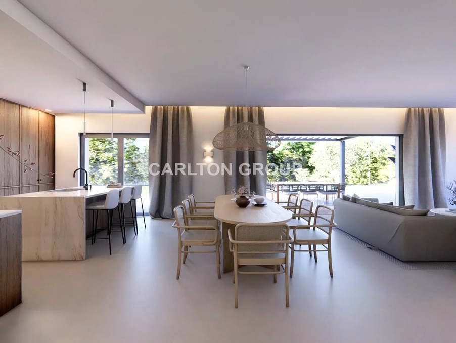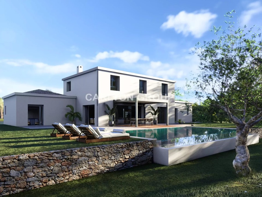 Superbe villa neuve, dont les intérieurs sont à terminer, sise sur un terrain plat d'environ 2600m2, exposé sud, au c?ur d'un quartier calme et prisé de roquefort les pins. rare opportunité pour cette maison contemporaine d'environ 315m2 qui vous permet de laisser libre cours à vos envies sur l'aménagement intérieur. en rez-de-jardin: elle prévoit un grand séjour avec cheminée, une grande et belle cuisine américaine, l'ensemble ouvrant sur le jardin et la piscine à débordement. deux belles chambres en suite dont une master, avec salle de bains et/ou salle de douche avec toilette, une buanderie, un cellier ainsi qu'un toilette invité. le vaste salon est doté de grandes baies vitrées en galandage qui baigneront votre salon de lumière et vous permettront d'admirer la superbe vue sur la piscine à débordement et le jardin avec ses magnifiques oliviers centenaires. -- la disposition de l'étage permet de proposer plusieurs alternatives comme par exemple: 3 belles chambres, une salle de bain, un toilette séparé ainsi qu'un bureau. vue dégagée sur les collines et petit aperçu mer en arrière plan. ce bien est complété par un garage attenant de 40m2 avec porte de garage isolante et |