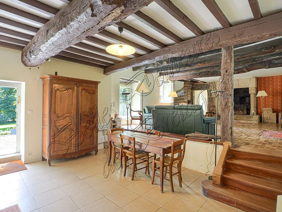 descriptif : le manoir (près de 200 m²) s'élève sur trois niveaux. l'entrée principale donne dans un grand séjour de 58 m² avec sa cheminée monumentale. une cuisine équipée, des wc, et une chambre avec salle d'eau et dressing complètent ce niveau. on accède aux étages par l'escalier à vis en granite situé dans la tourelle. le palier distribue une chambre avec salle d'eau et wc en suite, deux autres chambres, un bureau et une salle de bains avec wc. au second, une chambre sous combles, une salle d'eau avec wc. attenant au bâti principal, une buanderie.