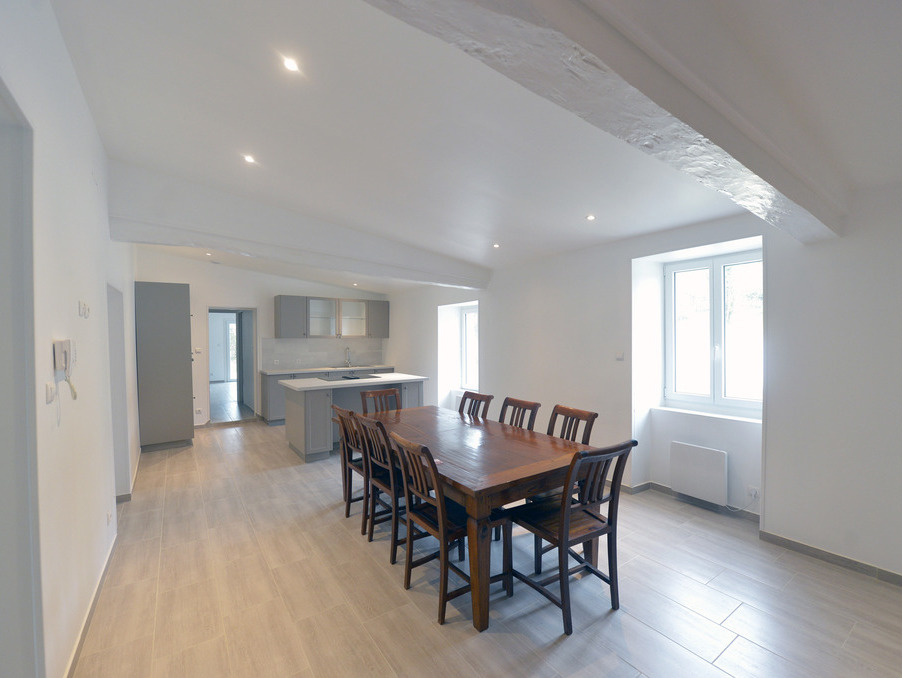sud charente-maritime, à cozes. une grande maison 'charentaise' en pierre familiale rénovée d'environ cent quatre-vingt-quatorze mètres carrés sur une parcelle arborée de quatre mille six cents mètres carrés. elle se compose au rez-de-chaussée d'un grand salon séjour d'environ quarante-trois mètres carrés, équipé d'un insert canalisé avec deux moteurs qui propulsent la chaleur, une grande cuisine dînatoire aménagée et équipée d'une surface d'environ trente-quatre mètres carrés, un dégagement, une grande salle de jeu bureau et une buanderie. vous trouverez également une grande suite parentale équipée de son dressing indépendant et une salle d'eau avec douche à l'italienne, baignoire et doubles vasques. À l'étage, un grand palier pouvant servir de bureau dessert deux grandes chambres et une salle d'eau équipée d'une douche à l'italienne. cette maison a fait l'objet d'une rénovation intérieure et extérieure complète, la toiture est neuve. la maison est équipée de doubles vitrages et elle est reliée à la fibre. le bien est équipé d'une micro station neuve pour l'assainissement. le parc de la propriété fait le tour de la maison, le terrain est piscinable, arboré avec des fru |
