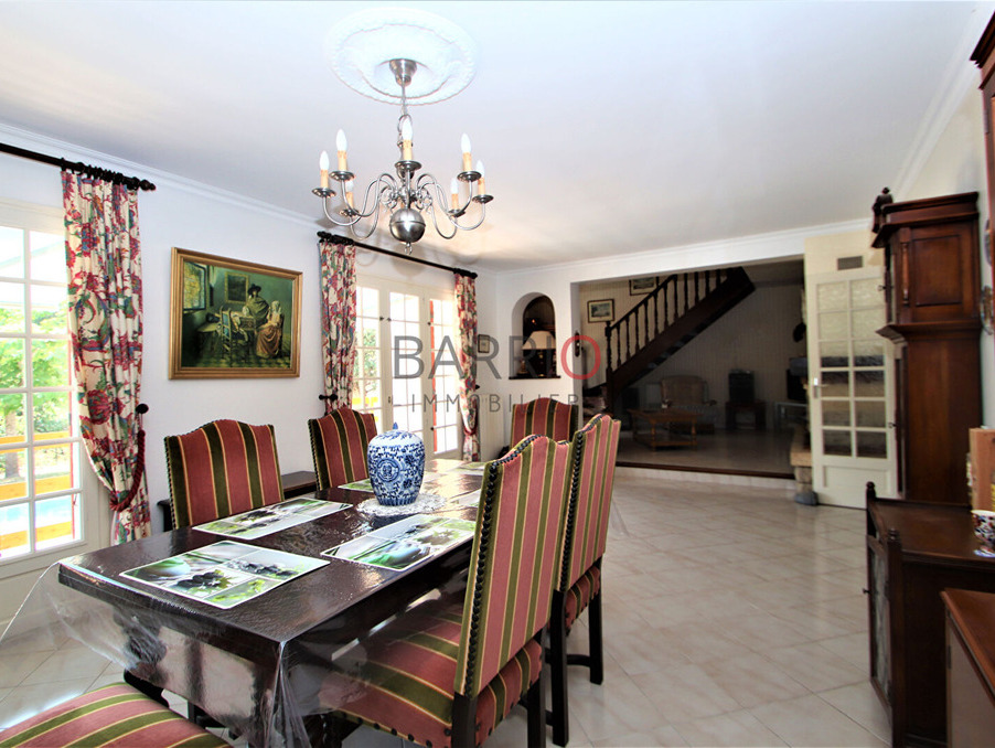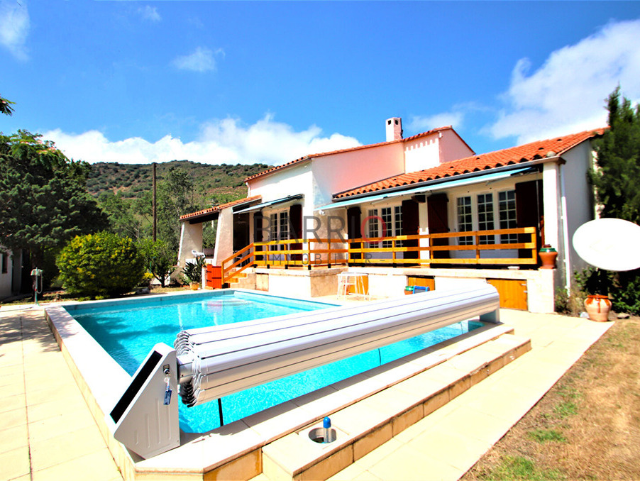 Nous vous proposons au milieu des vignobles de banyuls-sur-mer, à 5 km du centre-ville et de la plage, une villa quatre faces avec la vie de plain-pied, sur une parcelle de 1100 m² arborée et une piscine. elle est composée d'un salon, d'une salle à manger, d'une cuisine, de trois chambres, de deux wc, de deux salles d'eau, d'un cellier, d'un garage et d'une cuisine d'été. (5.00 % d'honoraires ttc à la charge de l'acquéreur.)