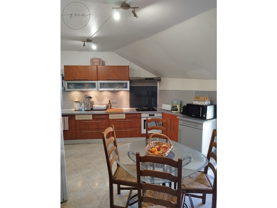 en plein coeur du village, maison entièrement rénovée d'environ 140 m2. elle se compose en rdc, d'une grande pièce de vie lumineuse avec une belle cheminée, une grande cuisine entièrement équipée de 21 m2, un cellier, une chambre de 16 m2, une salle d'eau ainsi qu'un wc indépendant. a l'étage 3 grandes chambres ainsi qu'un point d'eau avec wc. les plus: un garage de 18 m2, une grande cave de 70 m2, une belle terrasse avec coin barbecue sur un terrain de 200 m2, double vitrage, toiture neuve, cheminée, chaudière air eau pompe à chaleur de 2023. a voir rapidement! votre contact virginie cabéo