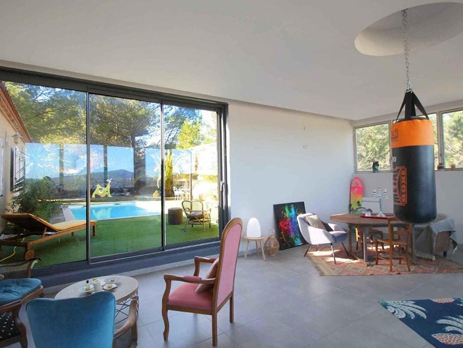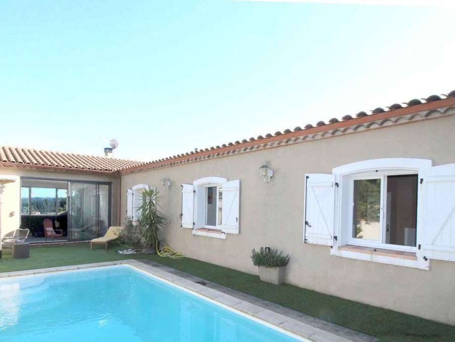 Rare. carcassonne, quartier recherché lac de la cavayère. grande villa de plain-pied en position dominante avec vue panoramique, piscine et appartement indépendant sur terrain clos et arboré. ce bien exceptionnel offre des surfaces très généreuses avec un séjour de 50 m², une grande cuisine équipée avec îlot central avec vue carte postale, une véranda grande hauteur très lumineuse traversante bâtie de 45 m² avec accès direct et modulable sur la piscine. l'espace nuit offre 4 chambres avec placards dont suite parentale avec salle d'eau. salle d'eau xxl façon sauna. appartement indépendant avec accès privatif comprenant cuisine équipée, séjour, chambre avec placard et mezzanine, salle d'eau avec wc. belles prestations : chauffage central, poêle à bois, climatisation réversible, portail automatique, volets roulants électriques. espace piscine sans vis à vis, filtration neuve et système de chauffage pour baignade sur une large période de l'année. abri de jardin. tout à l'égout. idéal grande famille ou regroupement familial. accès autoroute pour toulouse ou littoral 5 mn. dpe 118 lettre c ges 9 lettre b consommation annuelle d'énergie pour les usages recensés 1481 euros. pri |
