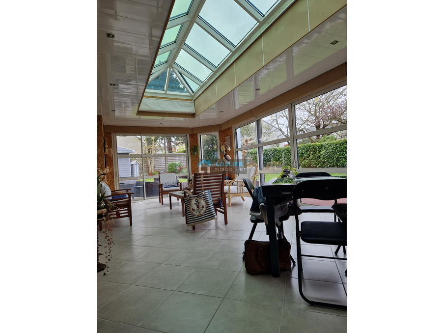 loslier immobilier moins d'honoraires plus de services ludivine pignard (ei en cours d'immatriculation au rcas de coutances) contact au ou , vous propose cette superbe maison en bord de mer sur la commune de saint-pair-sur-mer à 5 minutes de granville. idéalement située à 400 mètres des commerces et des tranports et à seulement 450 mètres de la plage, cette maison exposée sud-ouest ofrrant une vie de plein pieds sur un terrain magnifiquement aménagé d'environ 850 m2 est composée comme suit : au rez de chaussée une belle entrée avec ranegments et wc une cuisine aménagée et équipée ouverte sur le salon séjour (équipé d'un poêle à bois et granulés) ouvert sur une grande verrière très lumineuse donnant accès directement au jardin. vous trouverez aussi deux belles chambres spacieuses et lumineuses dont une suite parentale avec sa salle d'aeu équipée d'une douche à l'italienne et d'un wc. ces deux chambres disposent de leur propre terrasse face au jardin... ainsi qu'un bureau, une buanderie équipée d'une douche : idéal pour le retour de plage ! mais aussi d'un spatio avec pergola bioclimatique... a l'étage trois chambres avec rangements dont deux avec terrasse vue mer, d'une salle |