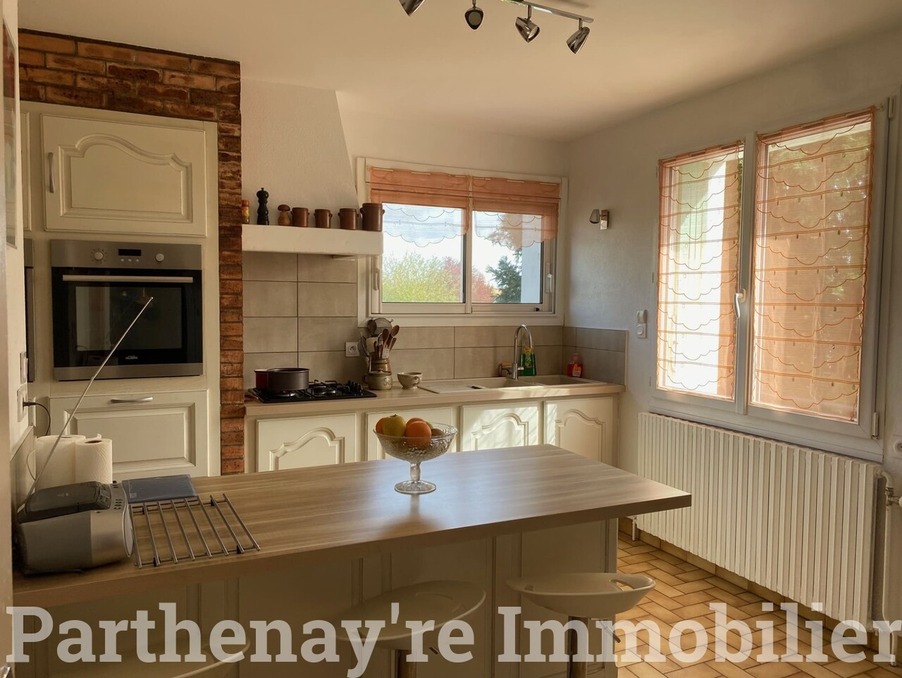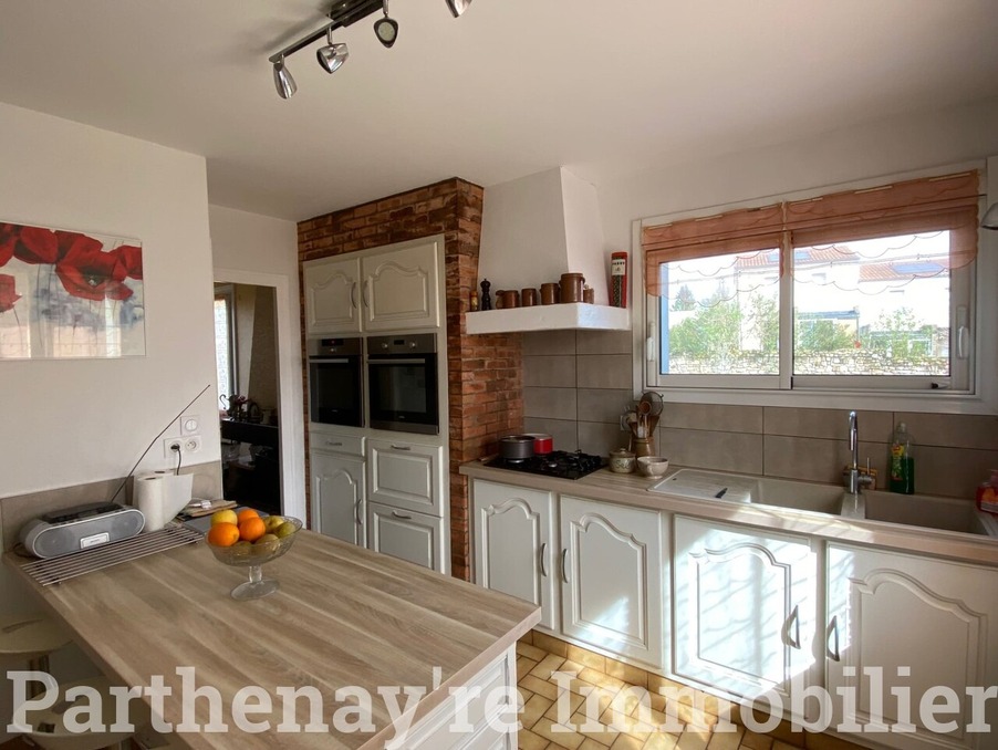 Maison sur sous-sol en très bon état située à parthenay. celle ci-comprend : entrée, séjour avec cheminée et accès sur terrasse, cuisine aménagée et équipée, dégagement, trois chambres, bureau, salle de bains, débarras et wc. au sous-sol : une chambre, bureau, buanderie, chaufferie, atelier et cave. beau garage de 31 m². terrasse côté jardin orientée ouest. maison avec de très belles surfaces pouvant accueillir une famille nombreuse. chauffage gaz de ville, tout à l'égout. montant estimé des dépenses annuelles d'énergie pour un usage standard : entre 2 340 ? et 3 220 ? par an. prix moyens des énergies indexés sur l'année 2021 (abonnements compris). les informations sur les risques auxquels ce bien est exposé sont disponibles sur le site géorisques : ?. prix hors honoraires 160 000 ? soit 5.31 % ttc à la charge de l'acquéreur. https:///honoraires.html