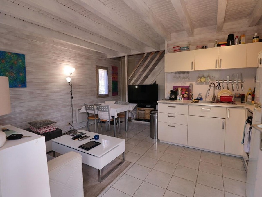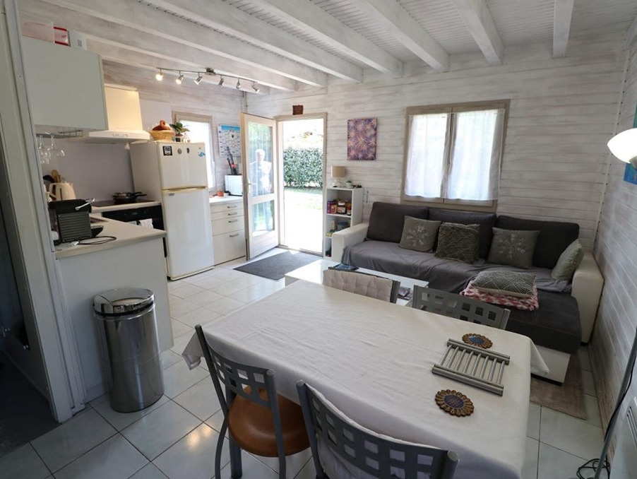 Bassin d'arcachon / la teste de buch / chalet d'habitation de 46 m2 habitables, 60 m² « utiles », 3 pièces sur 317 m2 de terrain en pleine propriété.ce bien vous est présenté en exclusivité par m. dominique drousset, situé dans une résidence privée, au calme, ce charmant chalet à structure bois vous offre :au rez-de-chaussée un salon-séjour avec une cuisine ouverte aménagée et équipée avec accès direct à la terrasse, une salle d'eau, wc. et une chambre. a l'étage : une chambre donnant sur un balcon, deux espaces de couchage ou bureau en mezzanine. a l'extérieur, une terrasse, un abri de jardin, un cellier. côté entrée: un espace privé de stationnement, le tout sur un terrain de 317 m2 clos, arboré et sans vis-à-vis. pour plus d'informations contacter mr dominique drousset agent mandataire indépendant au . réf : mandat 361751. prix de vente : 351750 euros honoraires d'agence inclus soit 16750 euros à la charge de l'acquéreur, pour un net vendeur de 335000 euros.vendu meublé, prêt à louer si vous le souhaitez. dans les charges peu élevées de l'a.s.l., est compris un accès au complexe ludique du domaine de la forge : tennis, piscines, toboggans, mini golf, aires de |