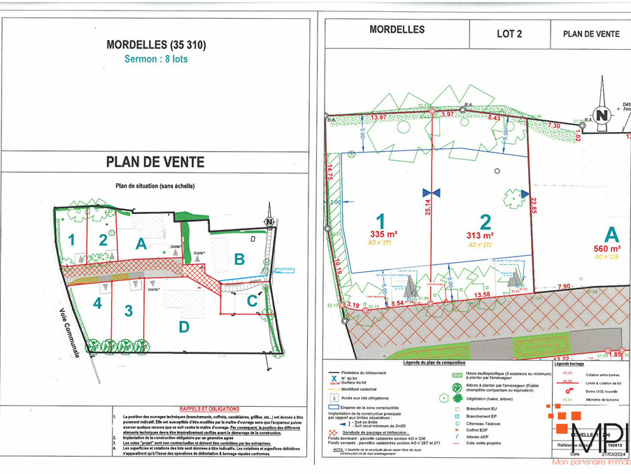 Exclusivite chez mpi terrains constructibles et viabilisés libre de constrcuteur à partir 313 m² à 451 m², libres de constructeur, sur la commune de mordelles (35310), à 15 minutes à l'ouest de rennes 35000, commune desservie par les bus de la ville de rennes (réseau star) et à 5 minutes de la gare sncf de l'hermitage 35590. notre agence mpi 35, mon partenaire immobilier vous propose en exclusivité 4 terrains constructibles vendus viabilisés et libres de constructeur (eau, électricité, tout à l'égout) pour réaliser votre maison. situé au calme en retrait des voiries. proches des commerces et transports. de 99599&euro - (lot1) à 143300&euro - (lot4) de 313 m² à 451 m² contactez votre agence mpi 3 rue du portail à l'hermitage mon partenaire immobilier : pour plus d'informations